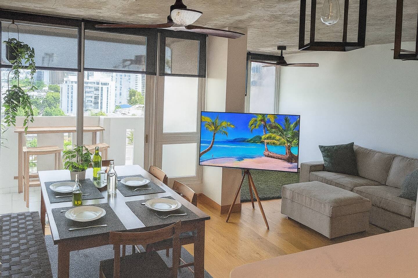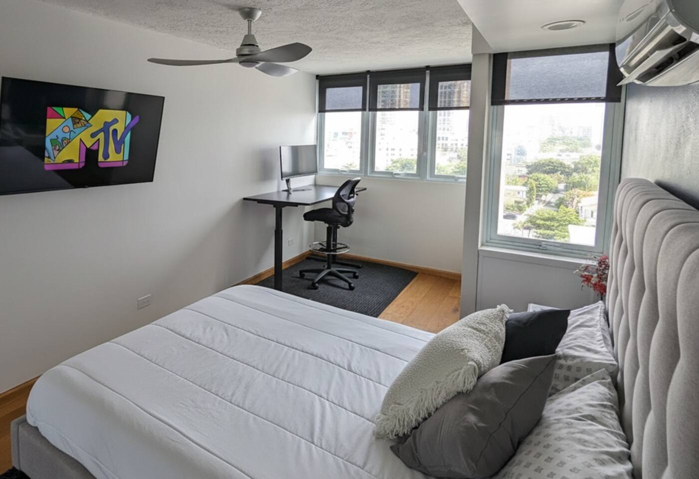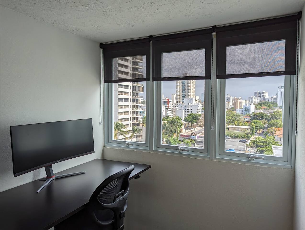 Welcome to FlipFlopFlat in beachfront Condado, San Juan, Puerto Rico—thank you for considering our home. The condo blends beachfront high-rise living with an urban, loft-inspired design. It features reclaimed touches, new renovations, and a relaxing city-and-mountain-facing balcony with a peek of the ocean. If you work while you travel, both bedrooms include adjustable standing desks and 34” curved monitors. Just bring your preferred HDMI or USB-C adapters. After work, step onto the balcony and feel connected to the vibrant Condado neighborhood around you. Our location is one of the best on the island. You can walk to restaurants, cafés, shops, bars, grocery stores, and nightlife. Old San Juan and Isla Verde are only a short Uber ride away. A few housekeeping notes: smoking and parties are not permitted, the unit is not suitable for infants or toddlers, the sofa is not a pull-out and cannot be used for extra guests, and parking is not included, though several garages are close by. We look forward to hosting you and hope you love Condado as much as we do.