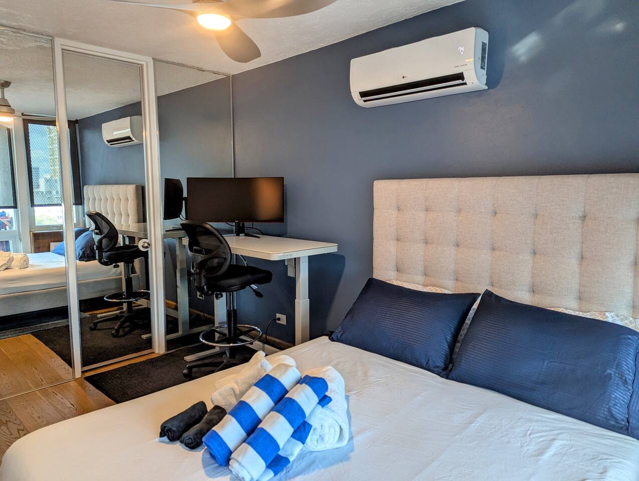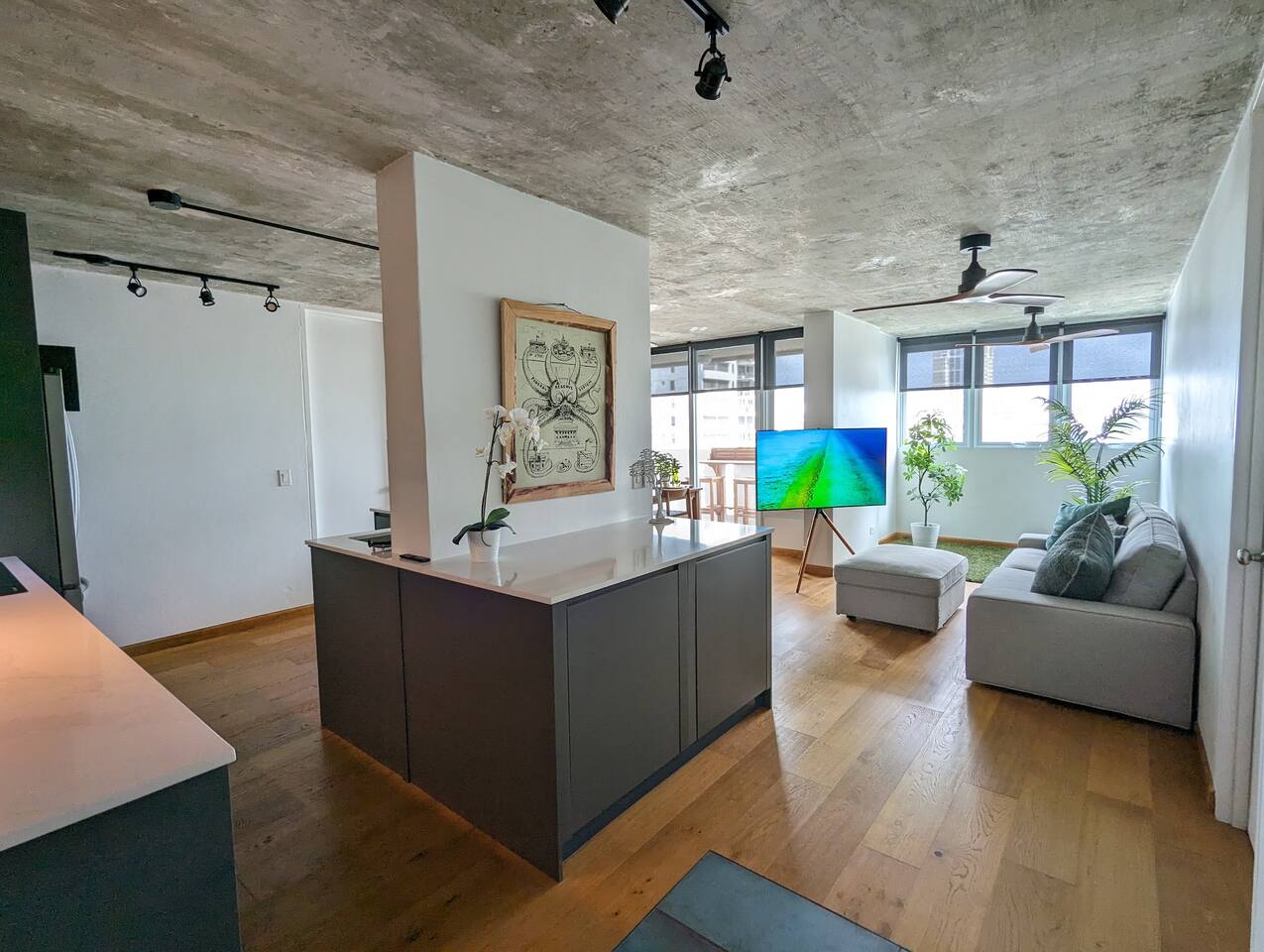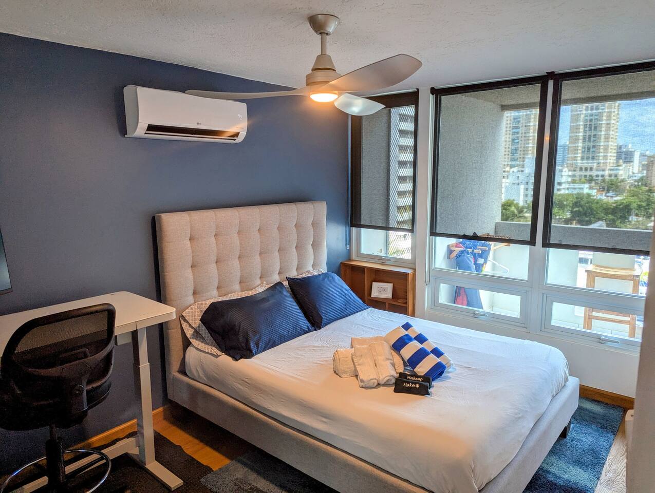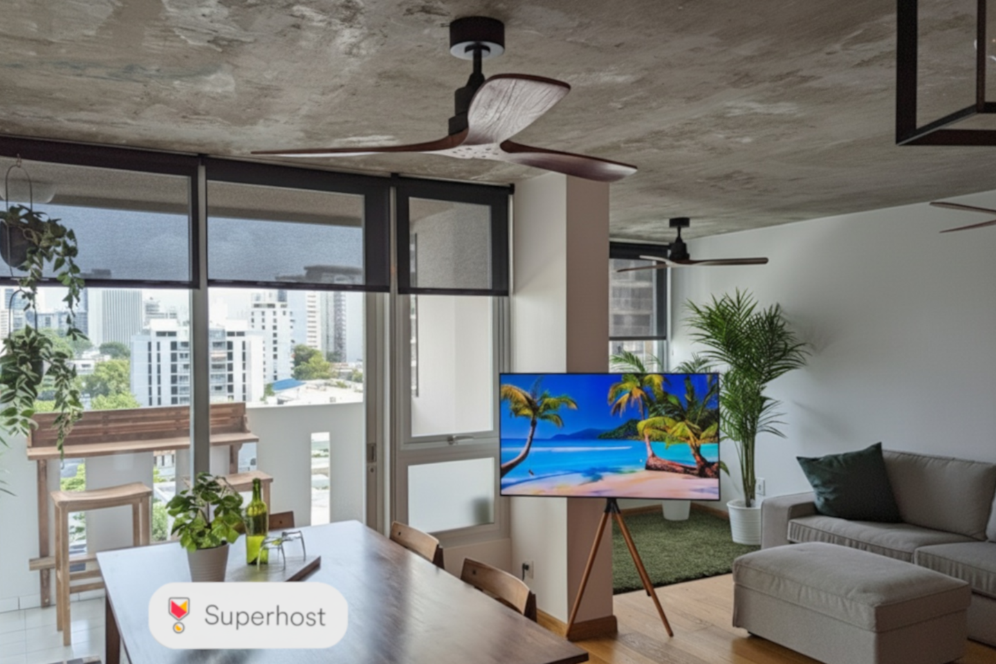 Welcome to FlipFlopFlat in beachfront Condado, San Juan, Puerto Rico—thank you for considering our home. The condo blends beachfront high-rise living with an urban, loft-inspired design. It features reclaimed touches, new renovations, and a relaxing city-and-mountain-facing balcony with a peek of the ocean. If you work while you travel, both bedrooms include adjustable standing desks and 34” curved monitors. Just bring your preferred HDMI or USB-C adapters. After work, step onto the balcony and feel connected to the vibrant Condado neighborhood around you. Our location is one of the best on the island. You can walk to restaurants, cafés, shops, bars, grocery stores, and nightlife. Old San Juan and Isla Verde are only a short Uber ride away. A few housekeeping notes: smoking and parties are not permitted, the unit is not suitable for infants or toddlers, the sofa is not a pull-out and cannot be used for extra guests, and parking is not included, though several garages are close by. We look forward to hosting you and hope you love Condado as much as we do.